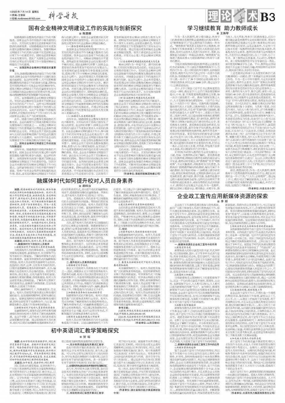 《科学导报》2023年7月14日版面速览