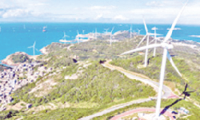 近年来,福建平潭深挖风能资源禀赋,全力推进配套电网工程建设,清洁能源发电量连续两年超过当地社会用电量,为推动经济社会绿色发展起到积极作用。图为日前拍摄的平潭北部生态廊道与海上风电场。
