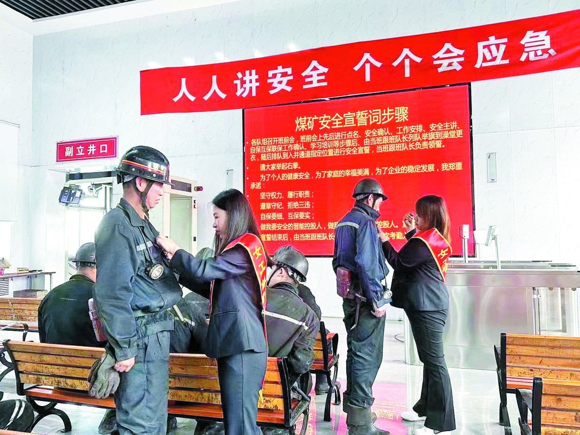 安全宣传到位。举办“安全生产月”启动仪式和“安全宣传咨询日”活动,在井口候车室和安全文化长廊进行安全宣讲、安全承诺、主题征文、发放安全知识手册、开展女工安全协管嘱安全、党员带头话安全等,丰富安全宣讲活动形式,营造浓厚的活动氛围,引导全体职工坚决做安全理念的“践行者”和“守护人”。