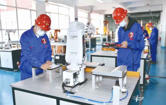二是以全面提升教学质量作为高质量发展的着力点,构建综合化、模块化、岗位化、一体化和教学资源库“四化一库”的课程体系,形成了思政德育课渗透化、文化素养教学开放化、专业理实一体化、文体美育劳动特色化、校外生产实训化“五位一体”的教学模式。在深化“三教改革”中,该校积极加强内涵管理,强化师资队伍建设,着力打造“上得了讲台、下得了车间”、“研、赛”双能的“双师型”教学团队。学校教师连续多年参加国家、省市级教学能力大赛和技能大赛,屡创佳绩,2022年及2023年该校教师共有123项教育教学成果获得省、市各类奖项。