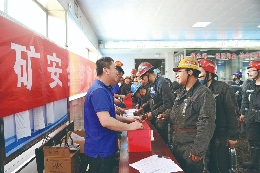 “走,副井口候车大厅开展安全宣传咨询知识有奖问答,我们去答题去。”刚升井的职工说着便成群结队来到候车大厅。6月16日,该矿通过发放宣传册、安全知识有奖问答形式,集中宣传安全生产法、政策法规、职业健康、危险化学品和应急避险、自救互救等安全科普知识和技能,增强职工和家属对安全工作的认知和理解。同时,该矿精心组织开展安全知识竞赛和短视频征集,以《安全生产法》等法律法规、一规程四细则为主要内容,开展全员安全知识竞赛活动,面向全矿干部职工征集以“讲安全、会应急”为主题的个人短视频,并对征集视频进行评比给予一定奖励。