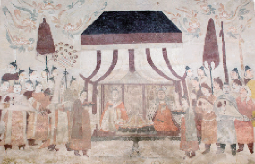 徐显秀墓墓室北壁墓主夫妇宴饮图 ■ 太原北齐壁画博物馆供图