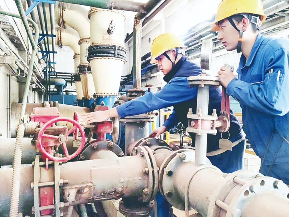 晋控电力河津发电分公司抓住1#机组C级检修有利契机,把检修现场作为实训课堂,聚焦日常管理的短板弱项开展靶向培训,由班组长和业务骨干结对带领新入职人员进行现场操作,帮助他们熟悉专业系统、掌握操作要领,提升实战能力和应急本领。图为该公司发电运行部中硫灰四班班长向新入职人员传授消缺作业技巧。