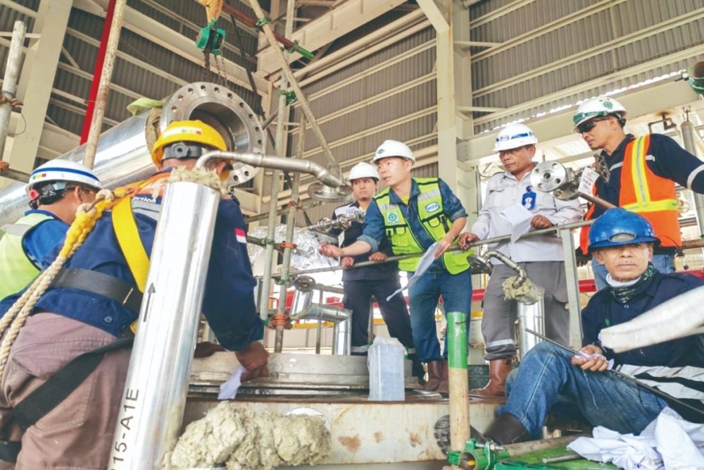在“一带一路”沿线国家印度尼西亚KAN项目现场,中国印尼双方工作人员正在紧张进行设备安装作业。印尼KAN硝酸硝铵项目由中国化学赛鼎工程公司与印度尼西亚最大的国有工程公司WIKA组成的联合体完成项目的实施。设计规模为硝酸182吨/天,硝铵227吨/天,建设地位于印度尼西亚东加里曼丹省。