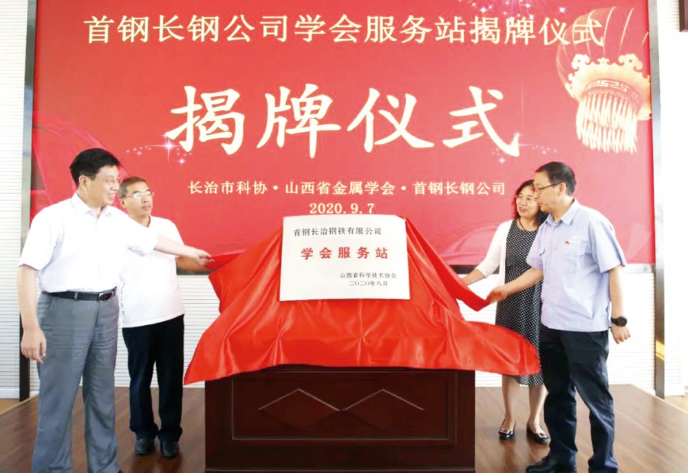 建立学会服务站平台,不仅有助于企业产品研制与开发项目推进,更有助于企业转型升级、技术创新成果的落地。2020年9月7日,山西省科学技术协会授予省级学会服务站揭牌仪式在首钢长治钢铁公司隆重举行。