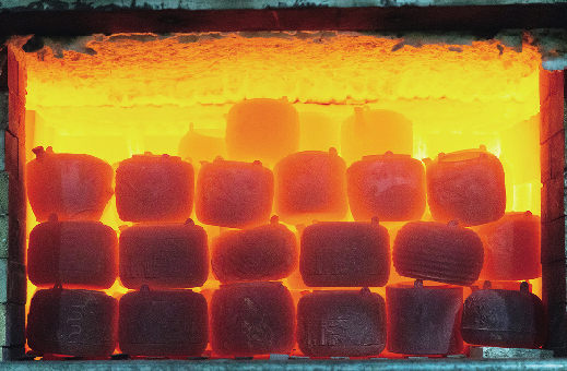 工人正在把浇铸的铁壶重新回炉,通过850度的高温三遍退火 ■ 资料图