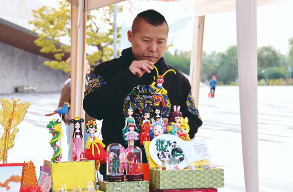 王博在展示面塑作品 ■ 科学导报记者刘娜摄