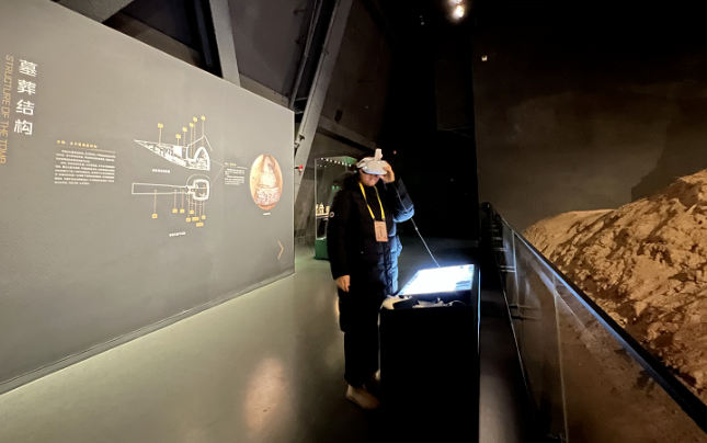 参观者使用VR眼镜沉浸式观看墓室内壁画