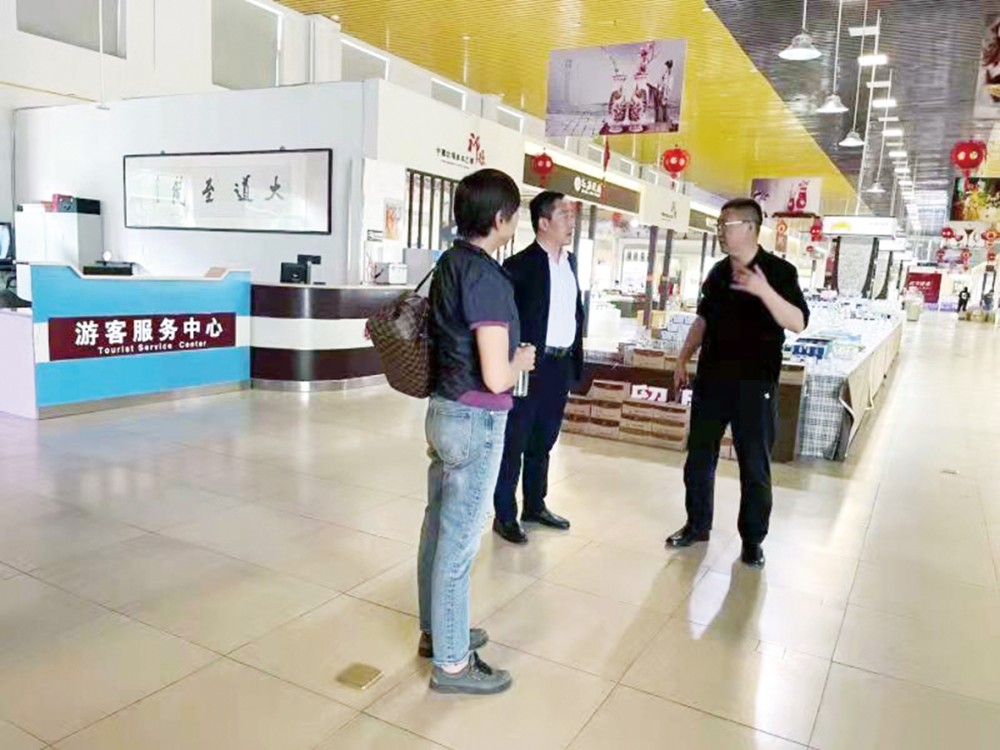 2021年5月,山西省对外经贸统计学会会长王丽(左一)调研“一带一路”(祁县)中小企业特色产业合作区玻璃器皿企业发展情况。