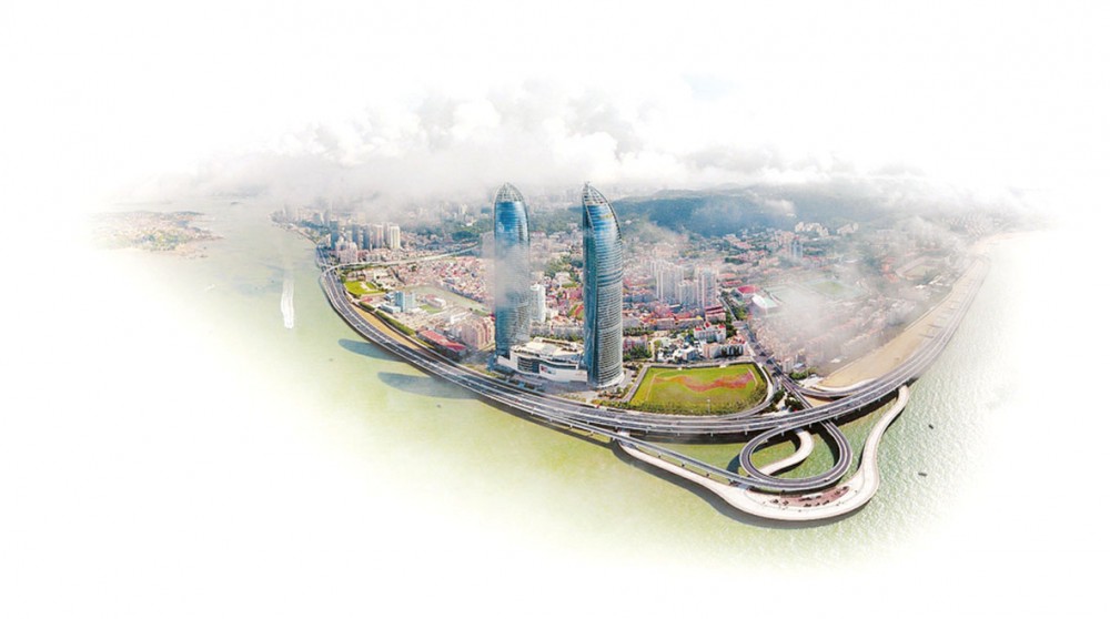 2017年8月24日拍摄的厦门演武大桥沿线及鼓浪屿。新华社