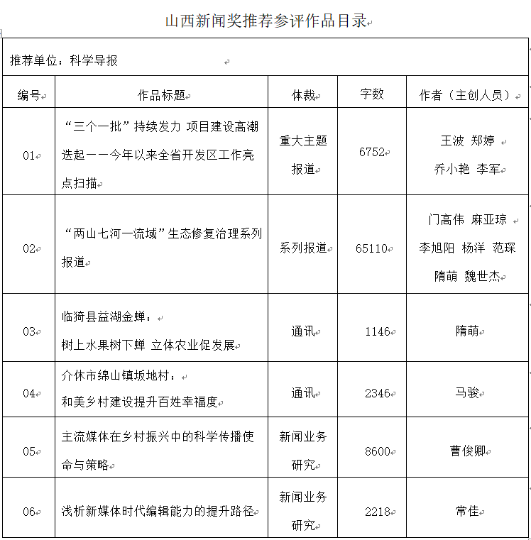 根据省记协《关于开展第33届山西新闻奖评选的通知》,经本社评委会审核评议决定,以下作品拟推荐参评第33届山西新闻奖,现予以公示,公示时间:3月4日——3月8日,有意见者,请将意见书面报综合部。