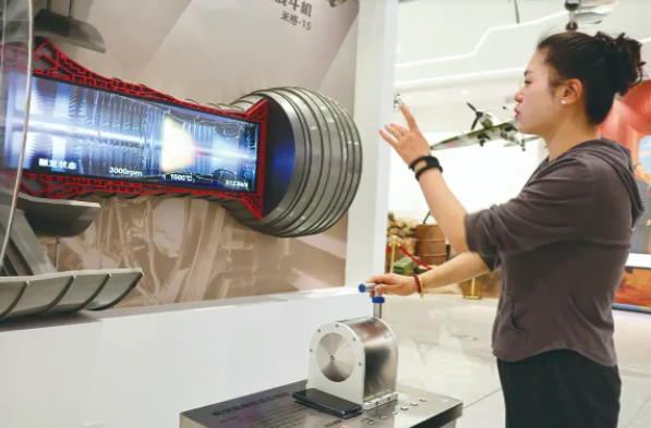 “航空科普文化区”展陈内容分为飞行梦想、活塞轰鸣、喷气崛起、逐梦蓝天和制胜空天5个板块。据工作人员介绍,这里涵盖69个核心热点,其中互动体验点31个、爱国主义教育点23个、航空知识15个。