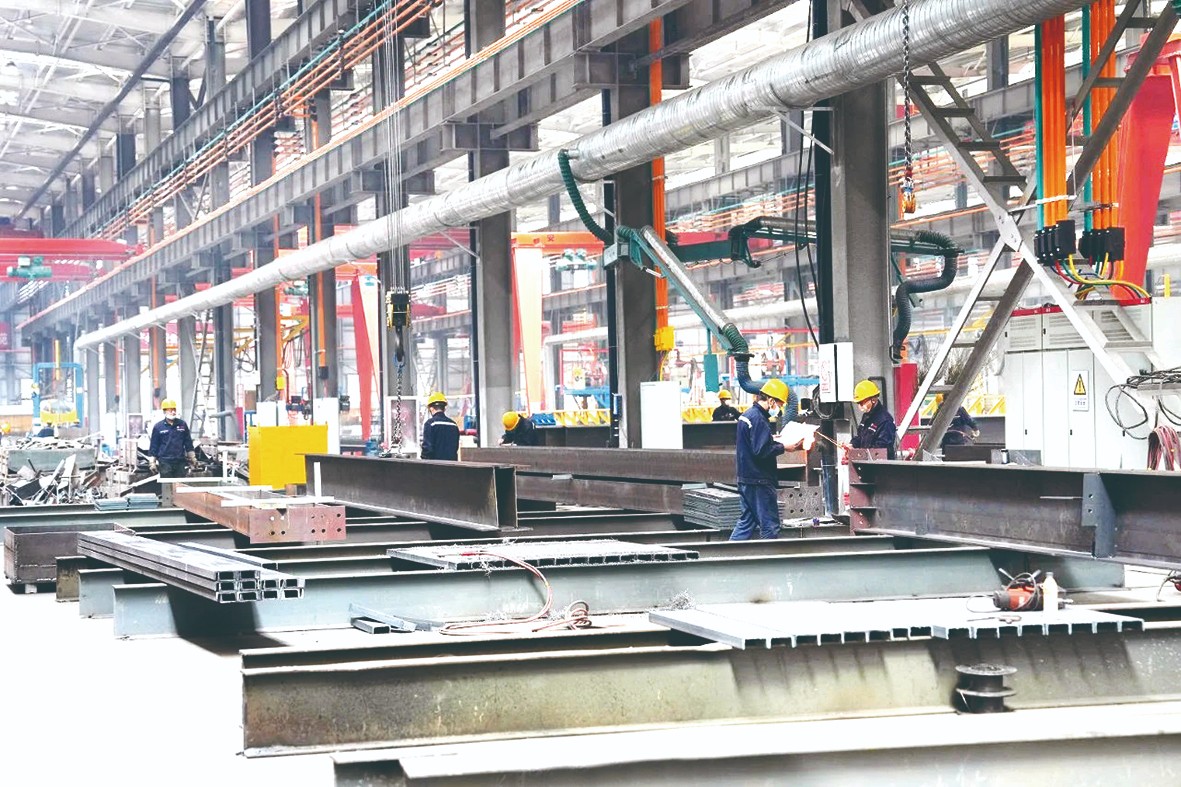 近日,在山西中部智造科技有限公司生产车间,工人们有的在焊接各种钢构件,有的操作桁车将加工好的钢构件吊转至堆场,有的操作机床加工钢板……一派繁忙景象。