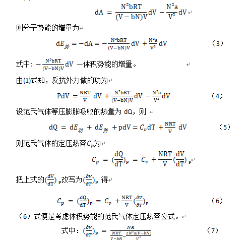一、考虑体积势能的范氏气体定压热容公式的导出