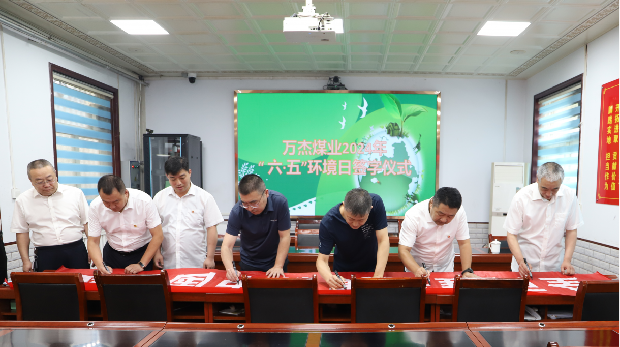 万杰煤业公司通过在办公楼设立宣传点、陈列展板、悬挂宣传海报、悬挂宣传条幅、发放宣传资料等方式,并且在会议室组织领导干部举行“六五”环境日签字仪式,多维度、多角度推动普及环保知识,提高职工的环保意识,培养职工树立环保理念,践行环保行动。同时,该公司还丰富宣传手段,将“线下”与“线上”宣传结合起来,利用广场电子大屏为载体,滚动播放集团公司“全力推进美丽霍煤建设”宣传片,展现集团公司全面加强生态环境保护、促进企业绿色高质量发展过程中取得的重大成果和显著成效,持续扩大宣传覆盖面和影响力,努力推进美丽霍煤建设和高质量绿色发展。