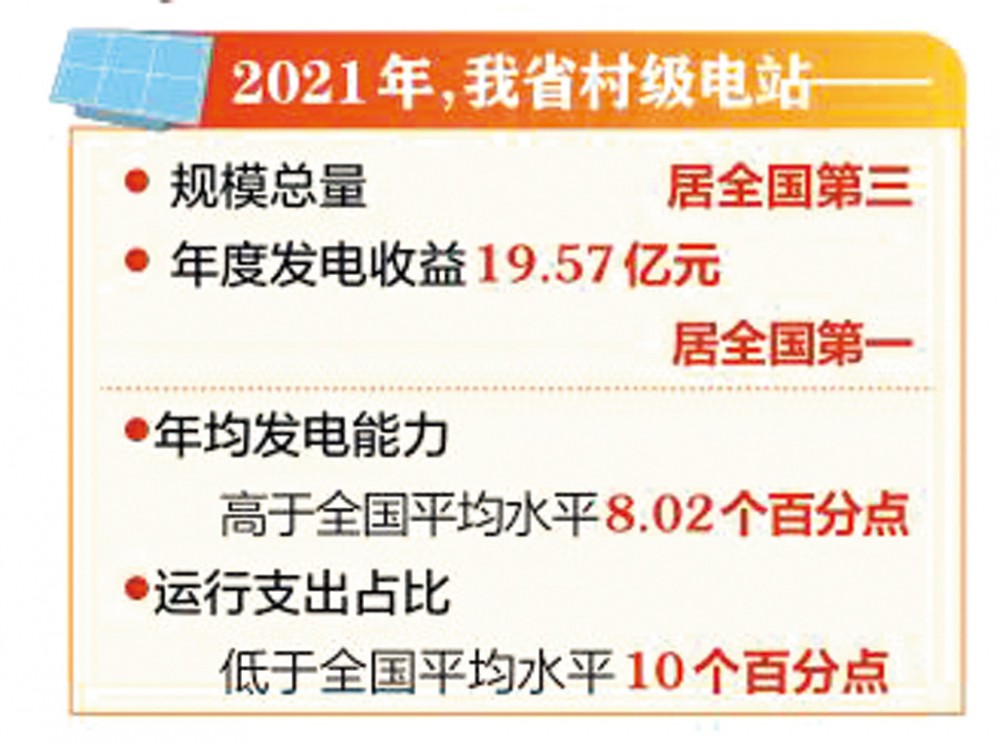 本刊讯 2月中旬,农业农村部对2021年全国村级光伏帮扶电站运行管理监测情况进行通报。我省村级电站规模总量居全国第三,年度发电收益19.57亿元,居全国第一;年均发电能力高于全国平均水平8.02个百分点,运行支出占比低于全国平均水平10个百分点。据省乡村振兴局局长张玉宏介绍,为使光伏帮扶电站发挥更大作用,省委、省政府将此项工作列入年度考核指标,各地加强监测监管,提升运维能力,精准分配收益,形成了巩固拓展脱贫攻坚成果有效衔接乡村振兴的优质资产。