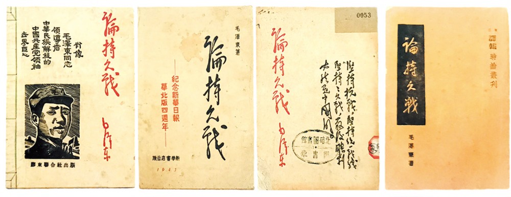 《论持久战》是抗日战争时期毛泽东最重要的军事论著。图为《论持久战》的不同版本。