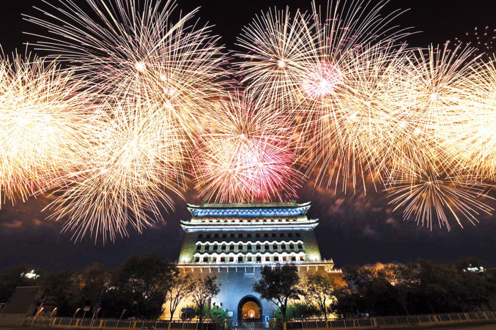 2019年10月1日,国庆之夜,烟花璀璨扮靓首都北京。