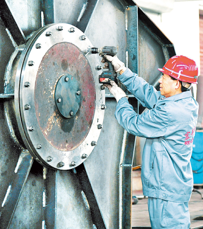 6月7日,运城市闻喜县宏丰选煤焦化设备有限公司车间,工人正在加工选煤焦化设备。去年以来,该公司坚持创新、科学、绿色、环保的理念,改造生产工艺,扩大了生产规模,拓宽了销售渠道,增加了就业岗位,助力当地经济发展。