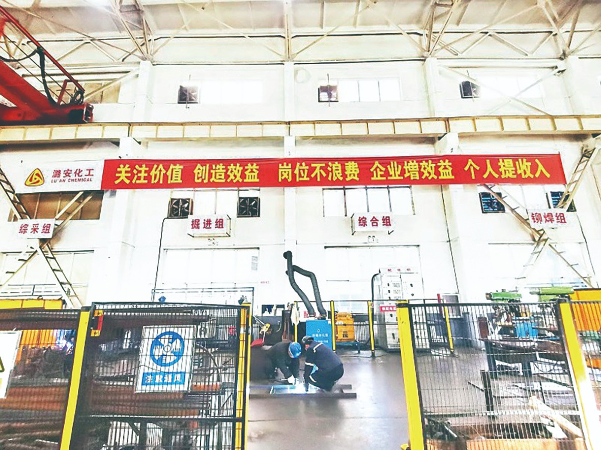 潞安化工集团五阳煤矿积极推行小改小革,鼓励员工围绕安全生产、降本增效等对设备、工艺开展改革优化,激发创新活力,提升生产效率。图为五阳煤矿加工制作配送中心员工进行自主革新现场。