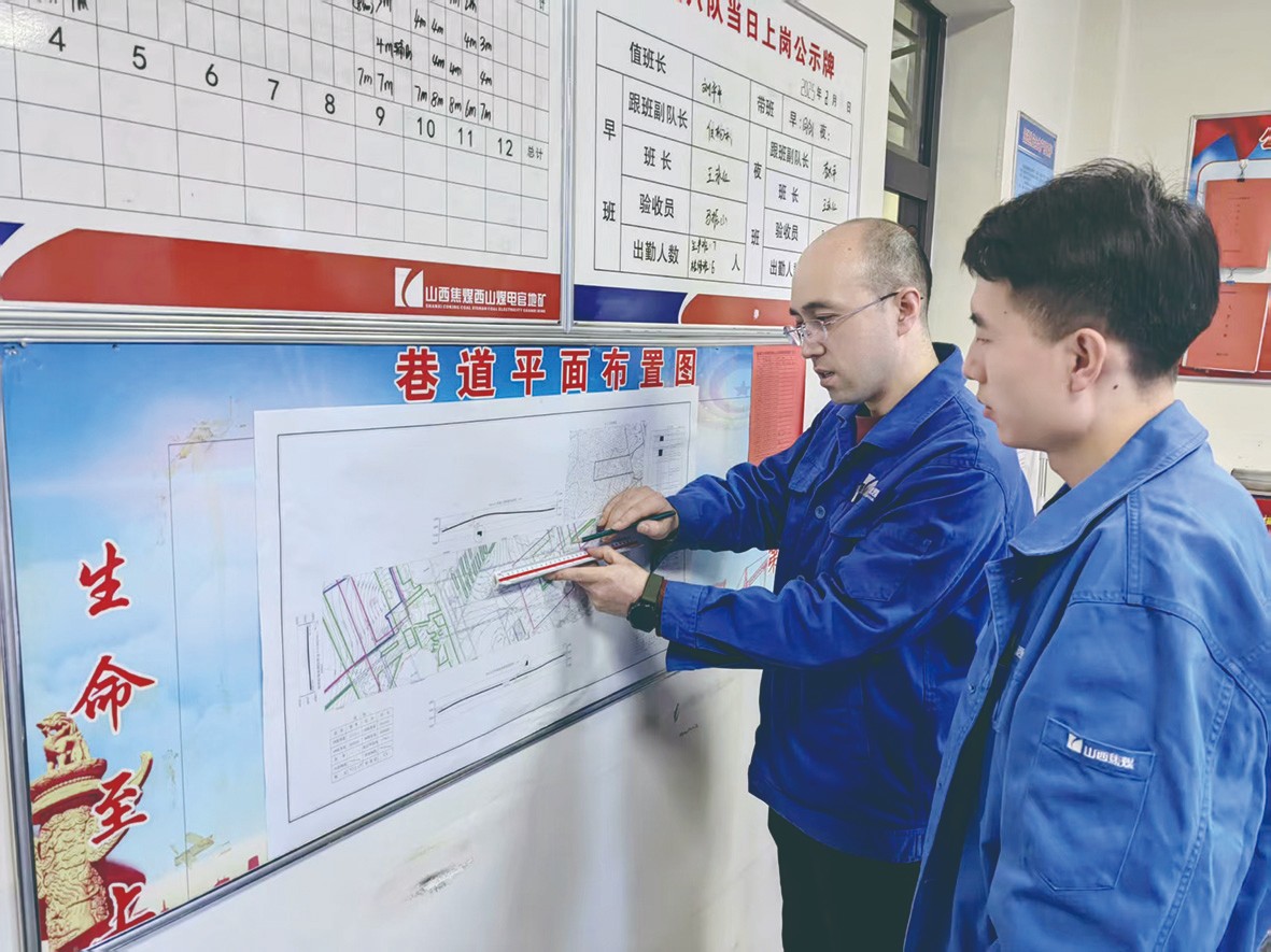 “在全断面封闭式临时支护使用过程中,一定要将封帮防冲钢丝绳两端分别固定于护帮前探梁前端,采用张紧装置将封帮防冲钢丝绳张紧,并与迎头封帮网每隔500毫米连接一扣,作用是承载、缓冲片帮煤岩对迎头封帮网的冲击……”山西焦煤集团西山煤电官地矿掘进管理部掘进六队技术队长王金金,正在为当班职工培训讲解全断面封闭式临时支护使用安全注意事项。他是部里的技术“明星”,多次获得官地矿先进、优秀共产党员、优秀技术员、技术创新能手等荣誉,自2006年踏入这片充满挑战与机遇的土地以来,王金金以不懈的努力和卓越的技术,在矿井建设中熠熠生辉。