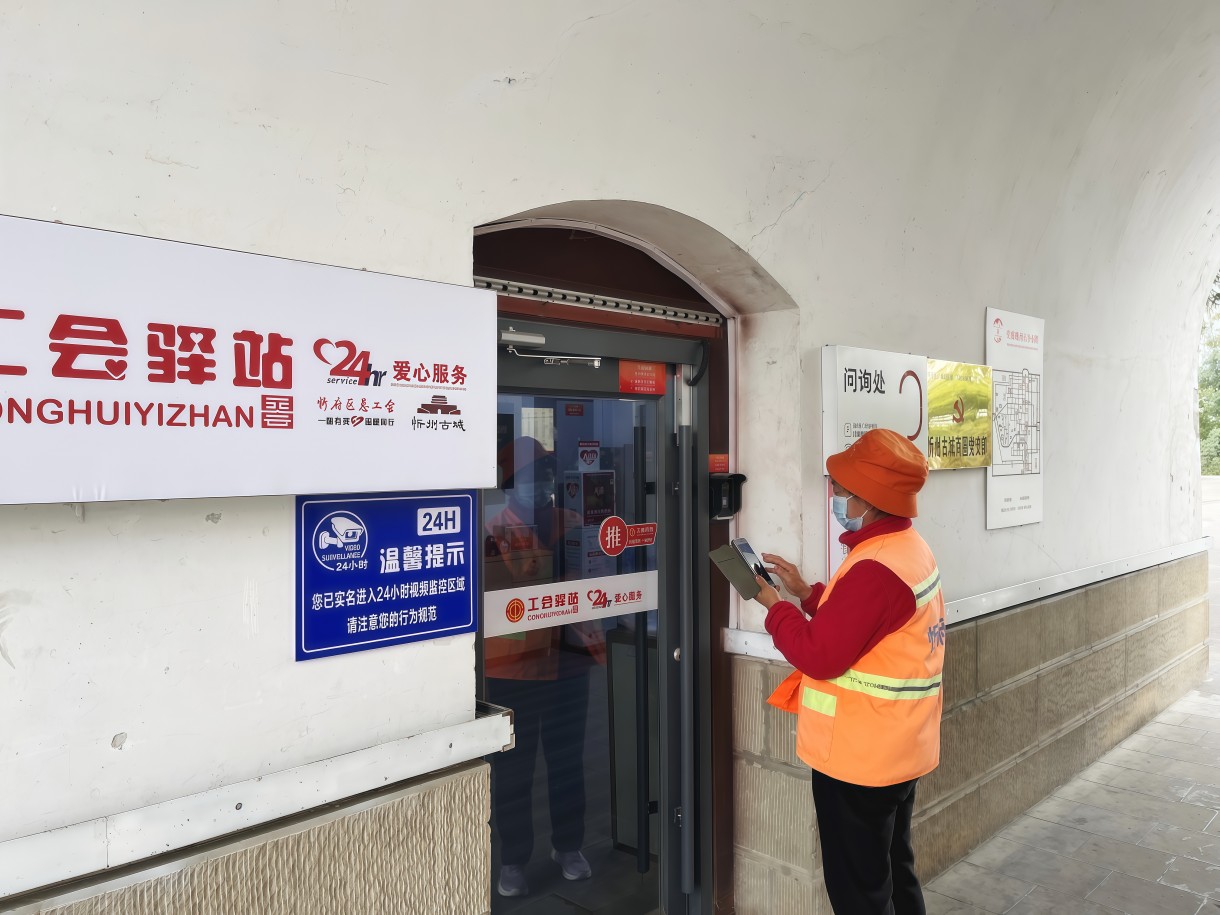 3月17日,在忻州古城景区土稍门工会驿站,清洁员张大姐将自己手机对准门前二维码,门应声打开,随即张大姐给手机充上了电,并通过站内饮水机打了满满一杯热水。据了解,忻州市忻府区总工会按照“新双15工程”工作部署,加速推进智能化驿站建设,在提高工会驿站服务质量、丰富服务内容、增加开放时间上下功夫,为长期在户外工作的环卫人员及相关志愿者提供全周期服务。■科学导报记者刘娜摄