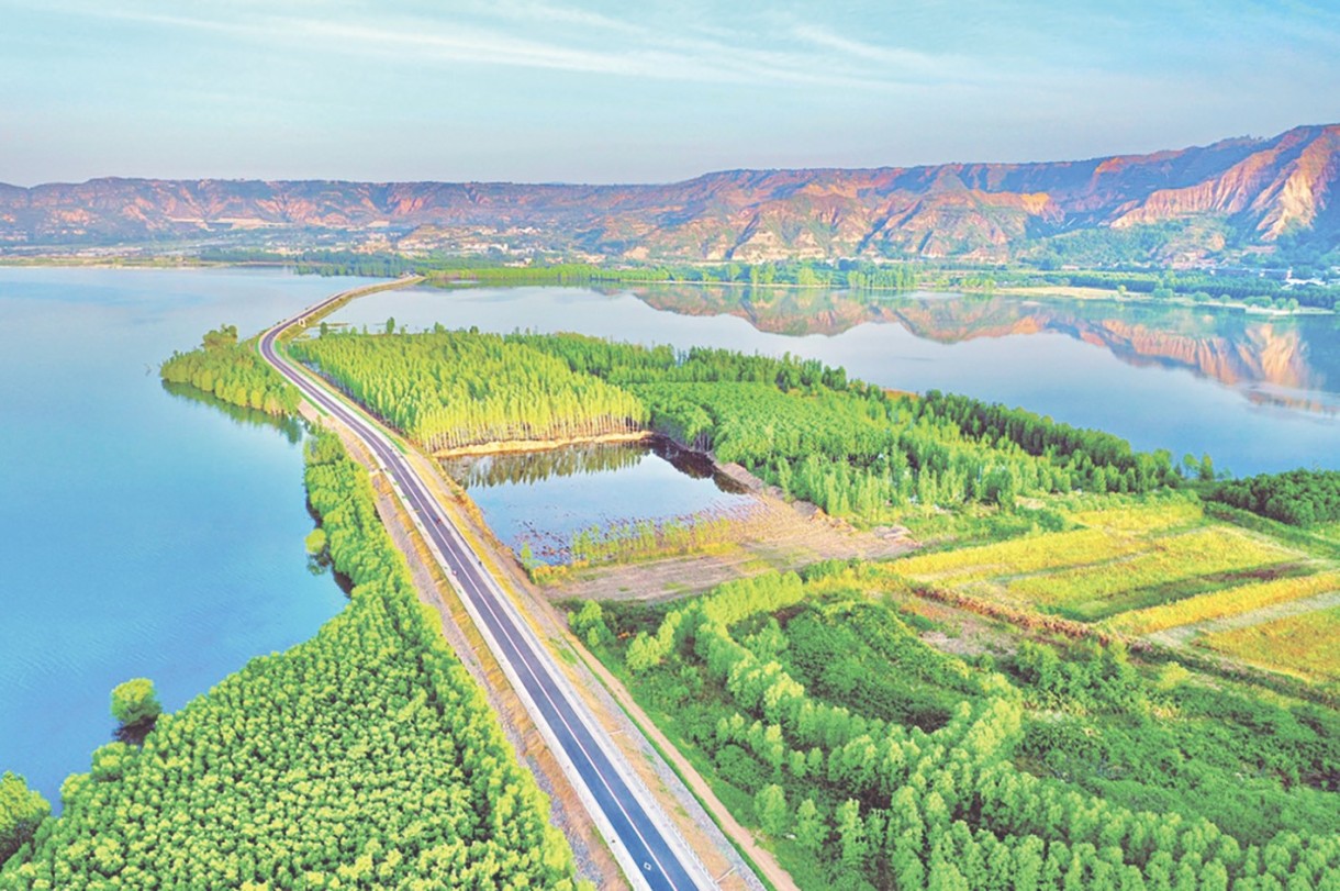 5月12日拍摄的黄河一号旅游公路平陆段风光,令人心旷神怡。近年来,平陆县加快沿黄生态廊道建设,统筹推进山水林田湖草沙系统治理,让天更蓝、山更绿、水更清。