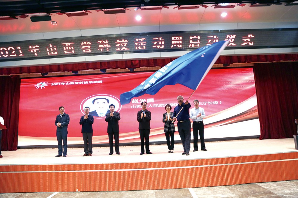 启动仪式上,赵光国向基层科普宣传队授旗,并宣布2021年山西省科技活动周正式启动,与会领导共同按下启动柱。