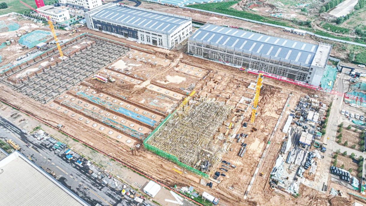 长治高新区智能高端装备制造产业三期现场项目管理负责人卢昱静介绍道,本项目拟建4栋钢结构厂房,1栋综合楼,1栋设备用房,同时建设规划场地内道路、给排、供电、暖通、大门、围墙等相关室外配套工程。目前综合楼、A-1厂房、A-2厂房主体结构已完成,正在进行外墙及内部装修施工。B-1厂房基础混凝土浇筑已完成,正在进行1层框架结构施工。设备用房灰土换填已完成,正在进行基础施工。