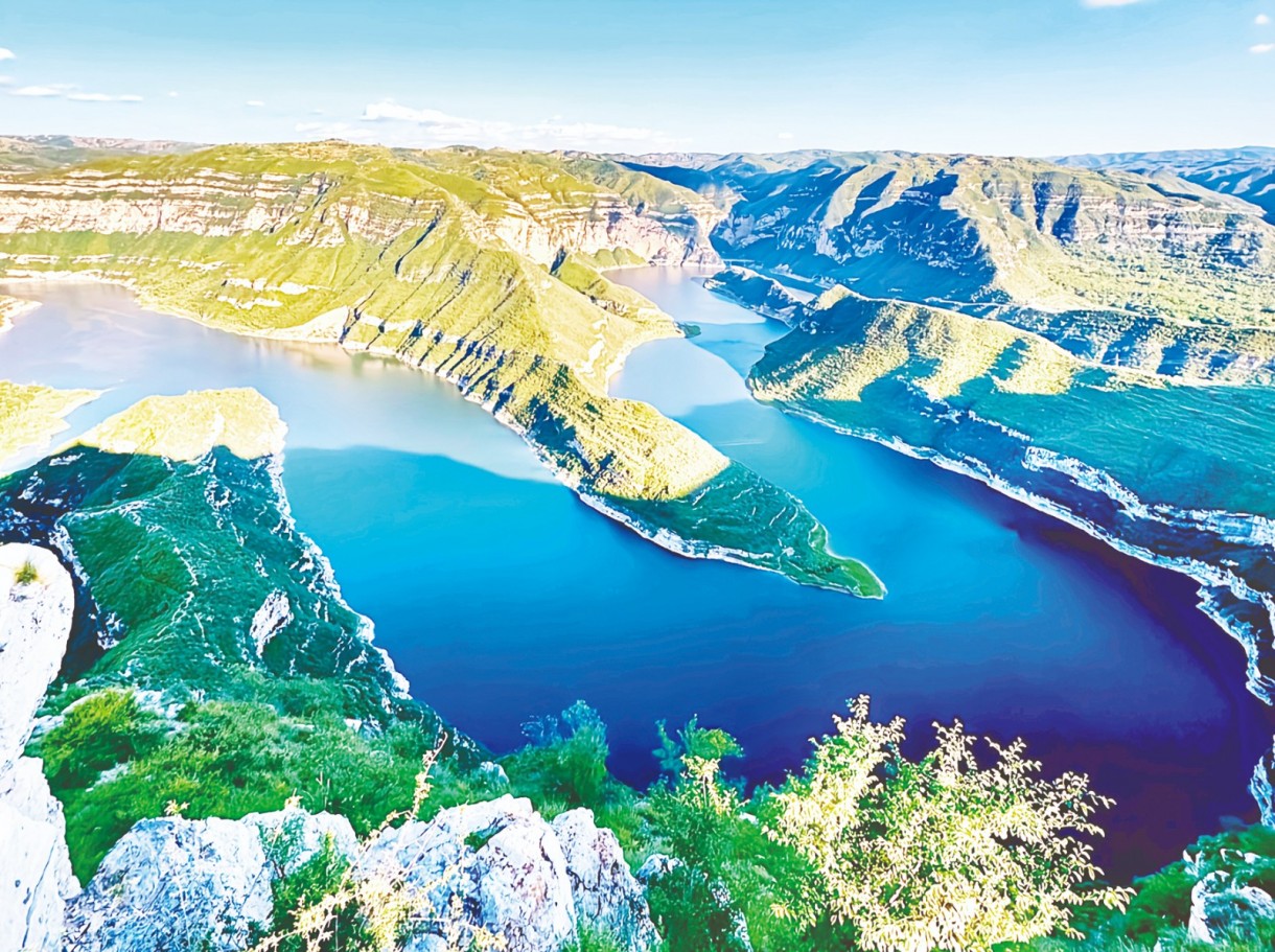 9月14日,在太原市尖草坪区马头水乡马吉掌村阁楼远眺,汾河二库如一条奔腾苍龙,携万壑之势自天际而来,在两山夹峙的峡谷间浩荡穿行。水波粼粼,与两岸葱郁山峰相映成趣。大自然的雄浑壮美尽收眼底,磅礴气势令人心潮澎湃,沉醉不已。