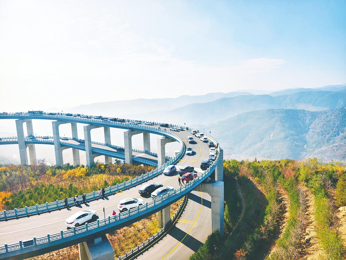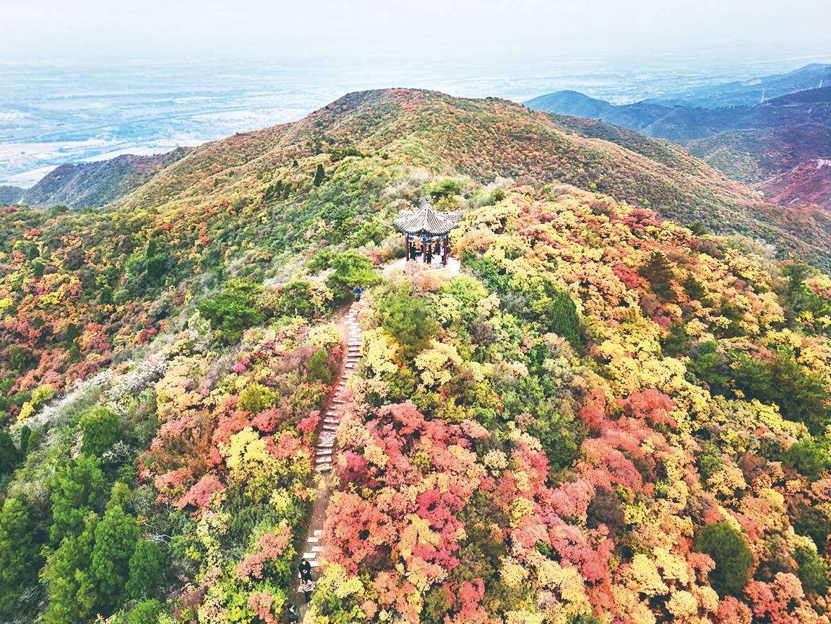 秋日的太原西山,如同一块被打翻的调色板。墨绿的油松林为底,金黄的白杨点缀其间,与远处东山的斑斓秋色遥相呼应。山风掠过,纷飞的落叶在林间小径铺就一条金色地毯,采风的画家正在写生,笔尖试图留住这转瞬即逝的绚烂。