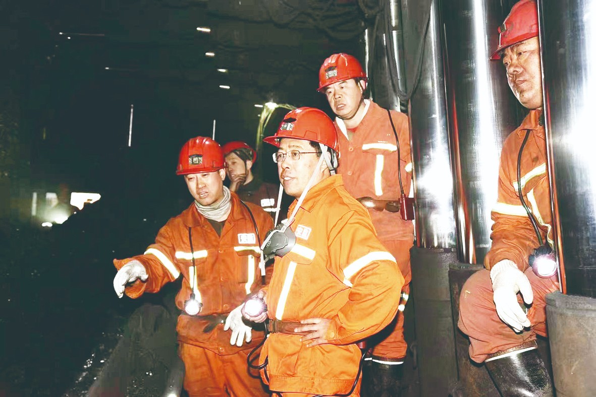 龙顶山煤业党总支书记、矿长何建文在井下排查隐患