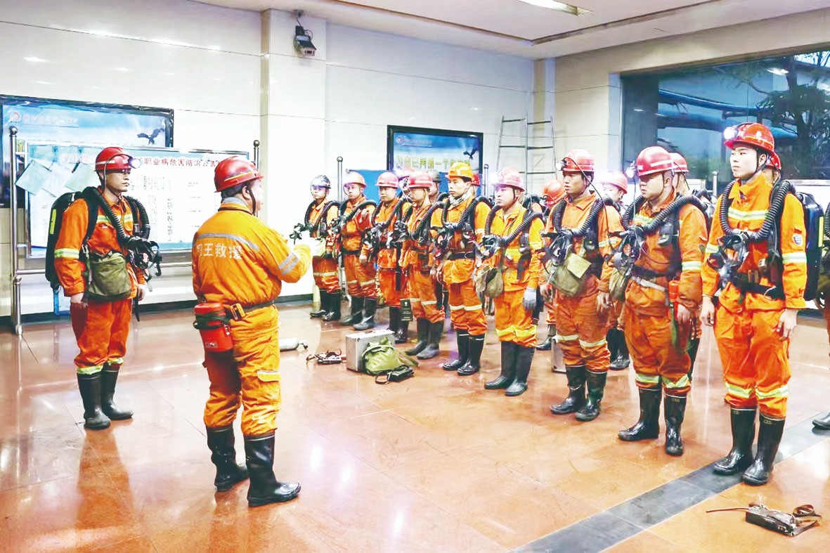 矿井开展反风演习时段王集团救护队员做入井前的工作安排