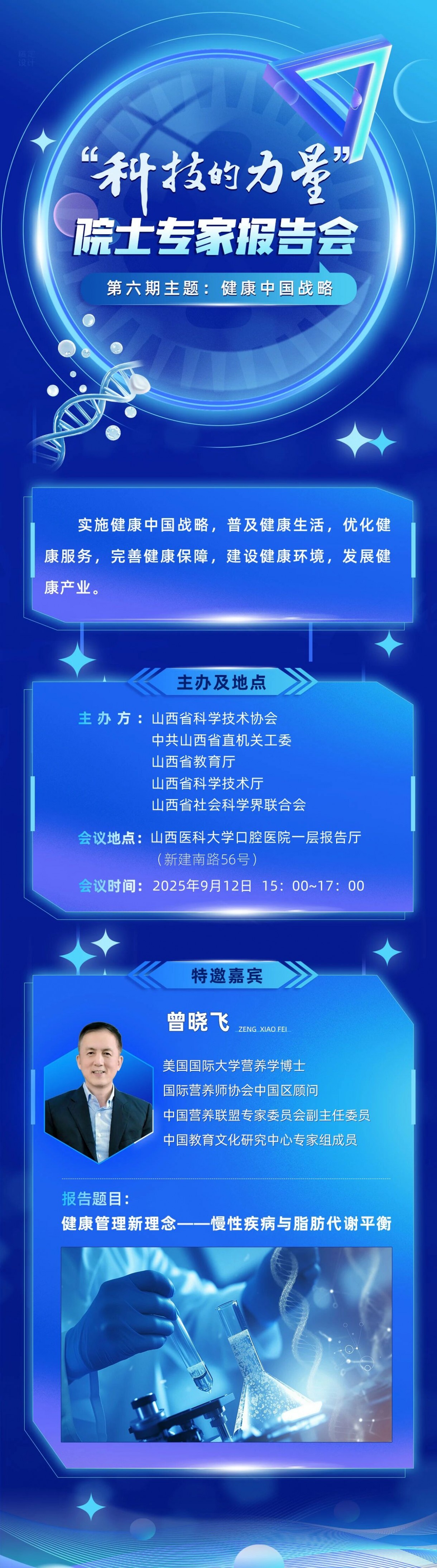 为深入学习贯彻党的二十届三中全会精神和习近平总书记对山西工作的重要讲话重要指示精神,助力全省领导干部和科技工作者紧跟科技前沿,提升科学素养,服务全省高质量发展,山西省科协联合省直工委、省教育厅、省科技厅、省社科联等多部门共同举办“科技的力量”院士专家系列报告会。该系列报告会第六场将于9月12日在太原举行。
