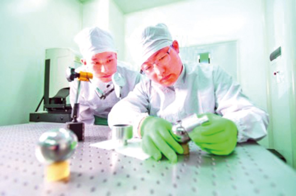 引力波探测“天琴计划”研究人员在华中科技大学引力实验中心磨制用于精密测量引力的钢球。 ■ 新华社发