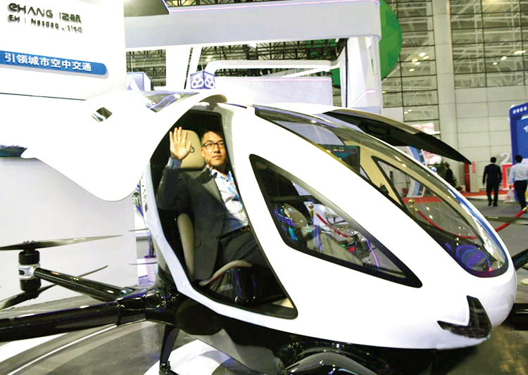4月25日,在第四届数字中国建设峰会数字成果展览会上,一家公司在展示采用无人驾驶技术的载人自动驾驶飞行器。