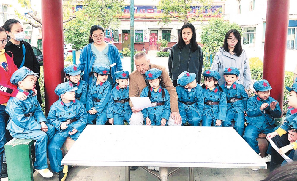 4月23日,太原市新南三社区党总支联合广电幼儿园在辖区庭院党校开展了“大手拉小手,红色文化同传承”活动。通过老党员给孩子们讲红色故事的形式,让孩子们铭记党史、报答党恩。