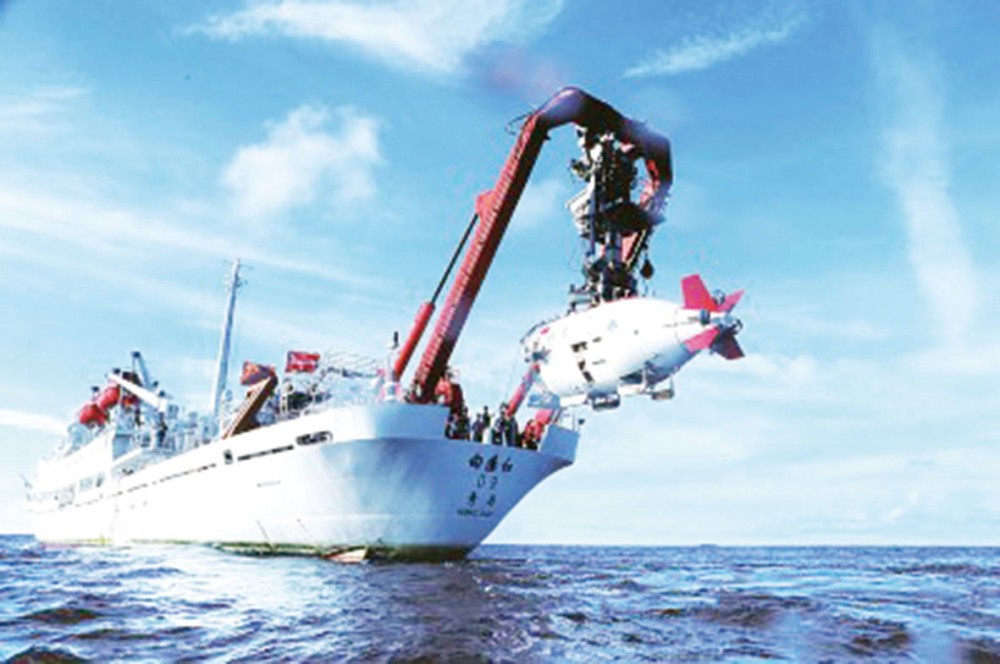 在西太平洋海域,“蛟龙号”载人潜水器进行中国大洋38航次最后一潜