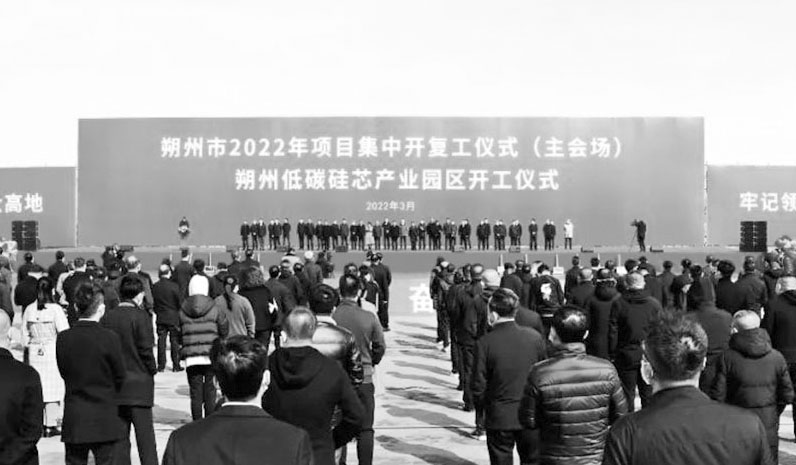 本刊讯 3月23日,2022年朔州市项目集中开复工(主会场)仪式在平鲁经济技术开发区低碳硅芯产业园区举行。