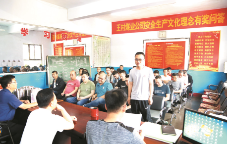 近日,晋能控股煤业集团王村煤业公司充分利用微信群、班前会、安全展板等方式,广泛宣传贯彻安全文化理念,引导广大干部员工牢固树立“安全高于一切,安全重于一切”的理念。图为该公司综采二队员工积极参与安全生产文化理念有奖问答。
