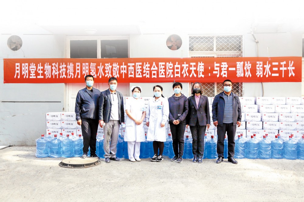 本报讯 5月17日,山西月明堂生物科技有限公司向山西省中西医结合医院战斗在一线的医务工作者们赠送300箱月明氢水和50桶桶装饮用水,慰问在新冠肺炎疫情防控期间冲锋在一线的白衣天使。