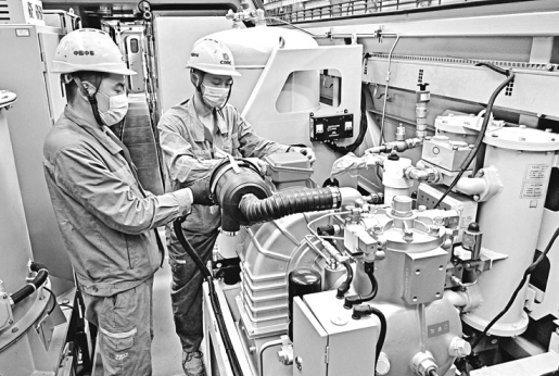 6月5日,在中车太原公司总组装车间,员工正在和谐电力机车内安装设备。该企业强化以设计、工艺为主的源头成本管控,从生产组织、工艺、材料定额等方面统筹布局,通过工艺改进,提高产品质量,促进提质增效。