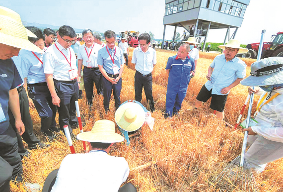 6月6日,省农业技术推广服务中心组织专家,对临汾市尧都区大阳镇岳壁村的旱地小麦示范田进行实收测产。经专家组测定,示范田亩产达579.9公斤,创造了面积3亩以上连片种植旱地小麦的我省高产纪录。