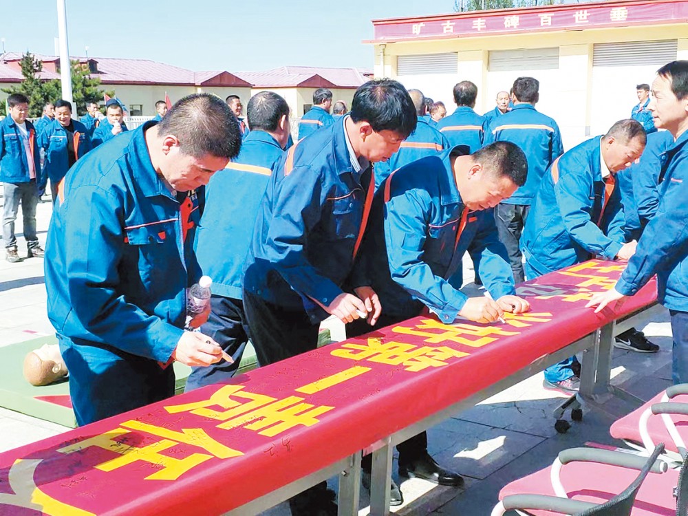 “我宣誓,为了安全生产,遵守安全生产法规,履行安全管理职责,严格规章制度……”启动仪式上,所有与会干部职工一声声铿锵有力的宣誓声回荡在台东山煤业公司内。随后,在“遵守安全生产法,当好第一责任人”横幅上郑重签下自己的名字。誓言和签名,不仅是承诺,更是一份责任,时刻绷紧安全这根弦,将安全入脑入心,强化主体责任落实,牢固树立“人人都是安全生产责任人”理念。