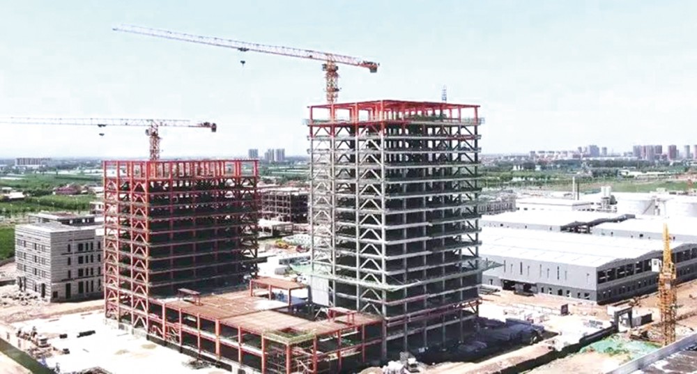 项目采用的钢结构主体从建筑本身品质及施工效率方面都有着较大的优势。钢构件根据图纸提前在工厂制作完成,运至现场进行安装,相比传统土建施工,施工机械化程度高,施工速度快。同时,现场湿法施工,散装物料、废物及废水排放大量减少,施工噪音小、环境好,当建筑服务期满需拆除时,钢材可全部回收利用,大大减少建筑垃圾,完全符合绿色环保发展趋势。