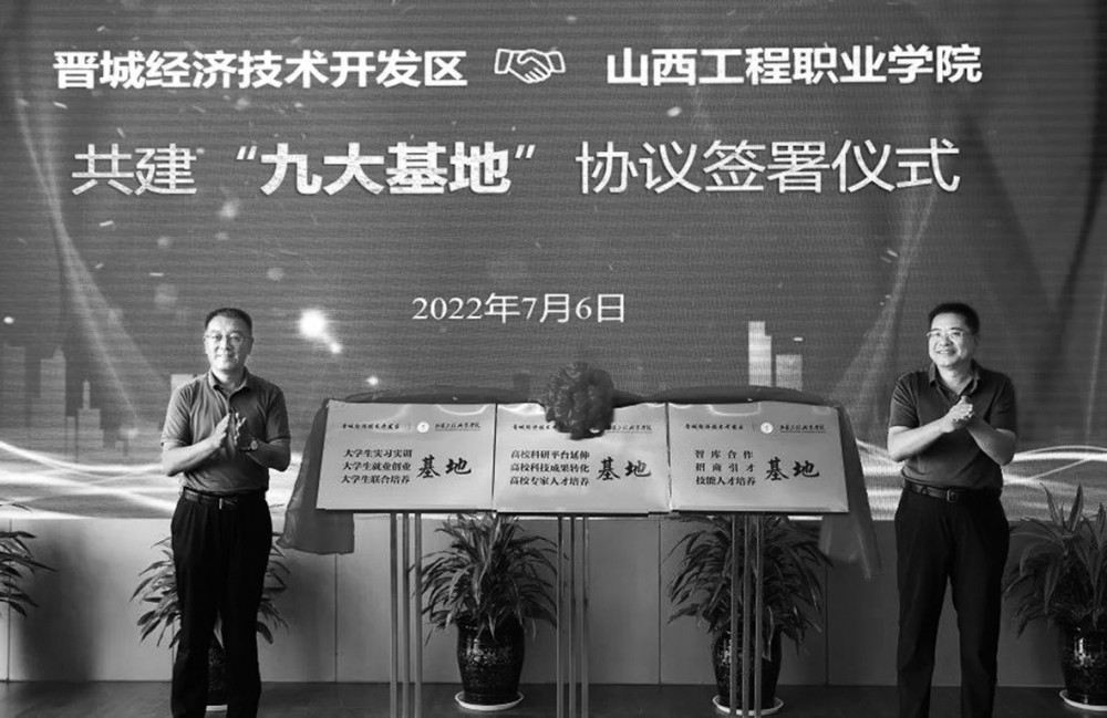7月6日上午晋城经济技术开发区与山西工程职业学院共建“九大基地”协议签署暨揭牌仪式在山西智创城NO.6举行这是深入贯彻落实省委、省政府深化省校合作战略部署的具体体现对实现加快光机电产业集群发展打造“世界光谷”战略目标具有重要意义。