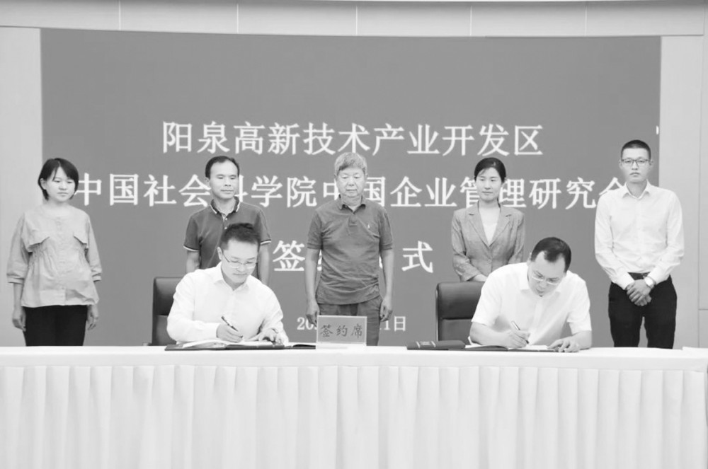谭伟强、赵永辉代表双方签署了《阳泉高新技术产业开发区管理委员会中国企业管理研究会战略合作协议》。中国企业管理研究会紧紧围绕高新区发展战略和产业发展需求,搭建阳泉高新技术产业开发区“产业发展融合创新示范基地”,联合开展高新技术产业和企业创新发展研究,打通产业规划的“最初一公里”和产业项目落地的“最后一公里”。