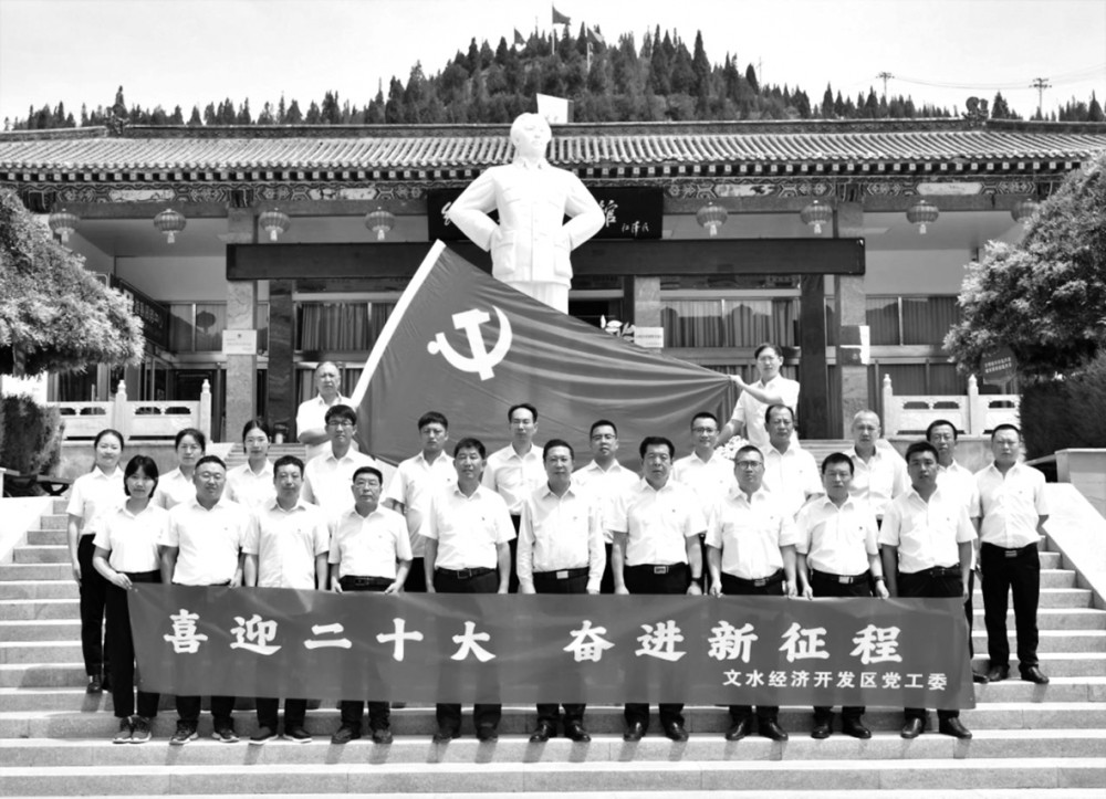 到达纪念馆后,文水经济开发区党工委全体党员干部面向毛泽东塑像三鞠躬,向革命英烈敬献花篮,面对鲜红的党旗,党员们一起重温入党誓词,在整齐庄严的宣誓声中,重新感受那份庄重的承诺与厚重的责任。