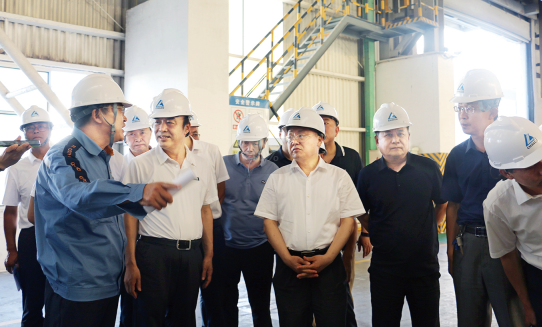山西省科协党组成员、副主席郝建新(左二)和科技工作者在吕梁铝镁产业园参观调研