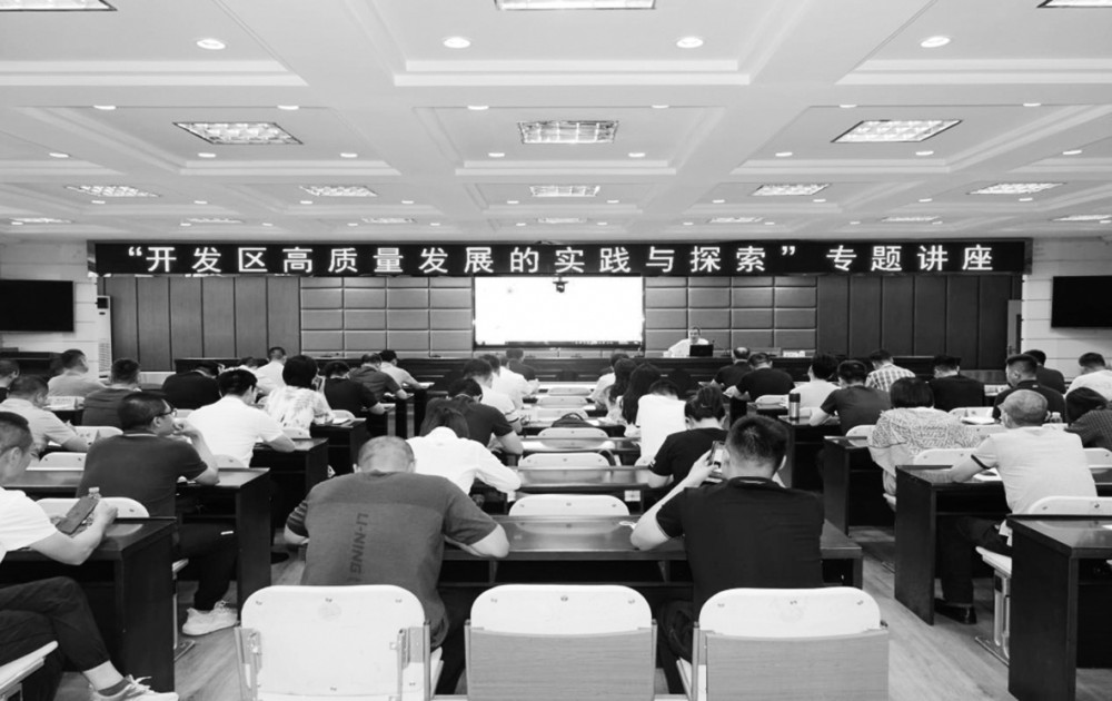 讲座中,梁志良调研员从“链长制”创设的时代背景、浙江省推行“链长制”的全域实践、“链长制”的内涵以及如何推行链长制等5个方面进行了详细介绍,强调了开发区作为产业的集聚地,在“链长制”体系中要发挥重要作用,并结合我区实际从开发区整合提升、优化营商环境、国际园区合作、“亩均论英雄”改革、体制机制改革五个方面,探讨了“链长制”如何发挥更大作用,会场反响热烈。